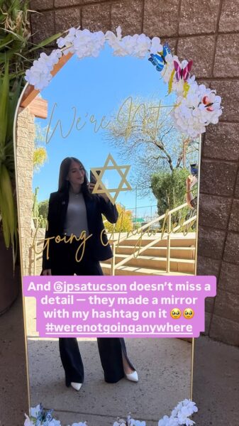 Keynote speaker Tessa Veksler was thrilled to arrive at the Jewish Philanthropies of Southern Arizona Women’s Philanthropy Connections brunch on March 8 and find a mirror emblazoned with her hashtag: #werenotgoinganywhere.